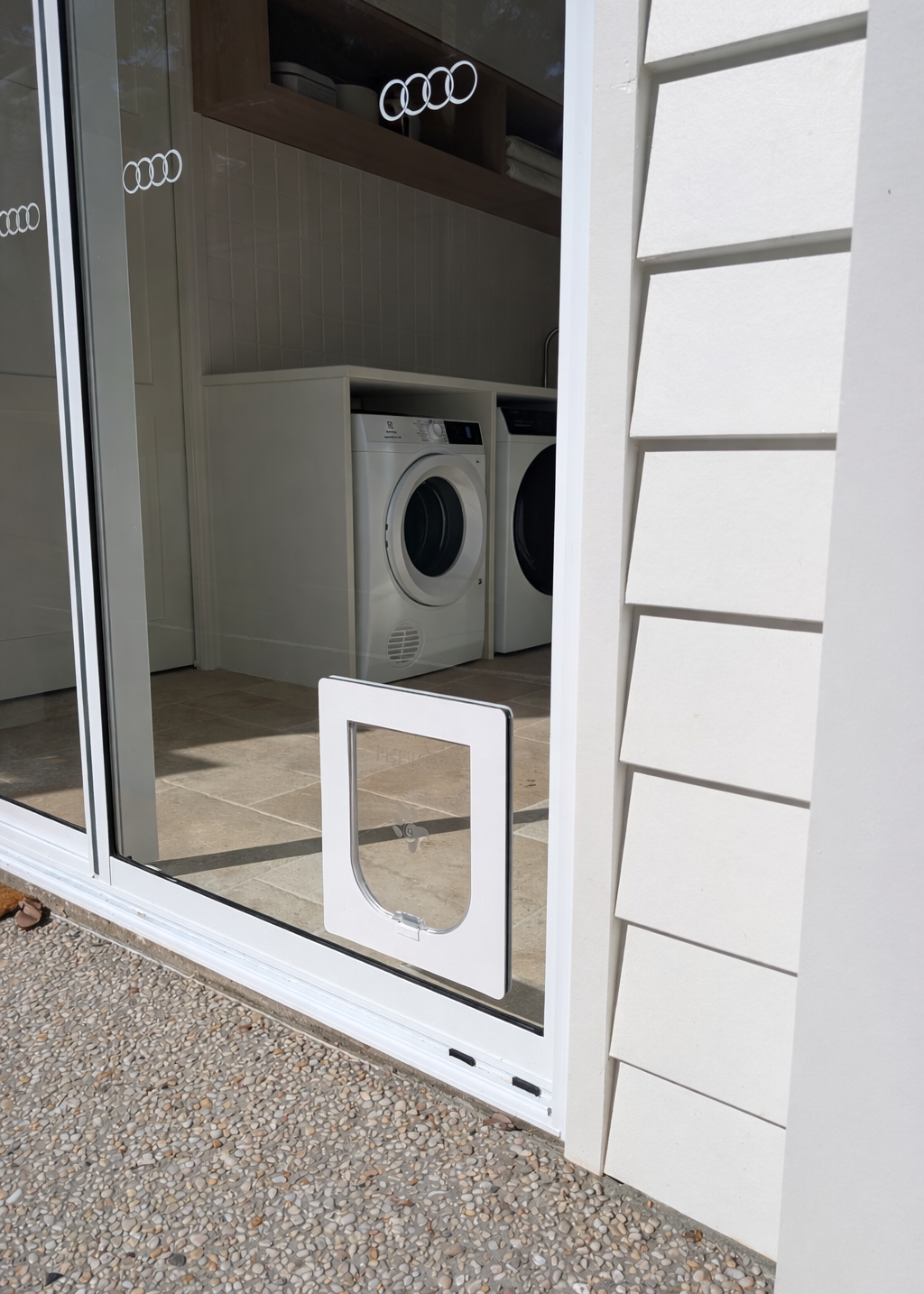 - Security Screen Pet Doors of the same size can be aligned with the Timber Pet Doors for to keep in the cooler or hotter weather.