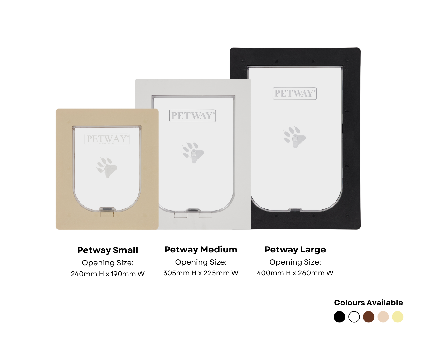 Choose the perfect pet door size for your furry friend based on their weight and breed.